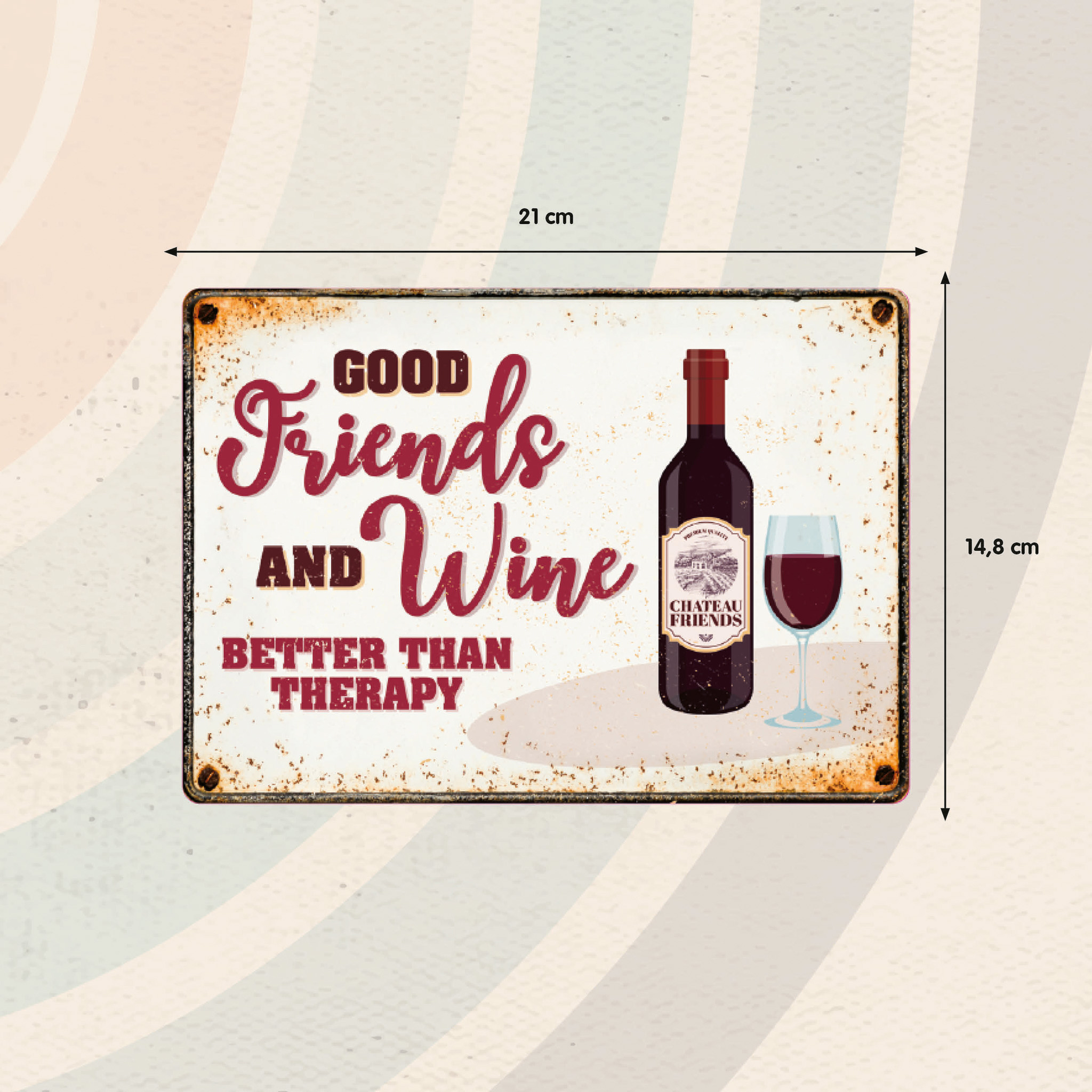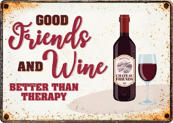 Metallschild Friends and Wine 21x14,8 cm