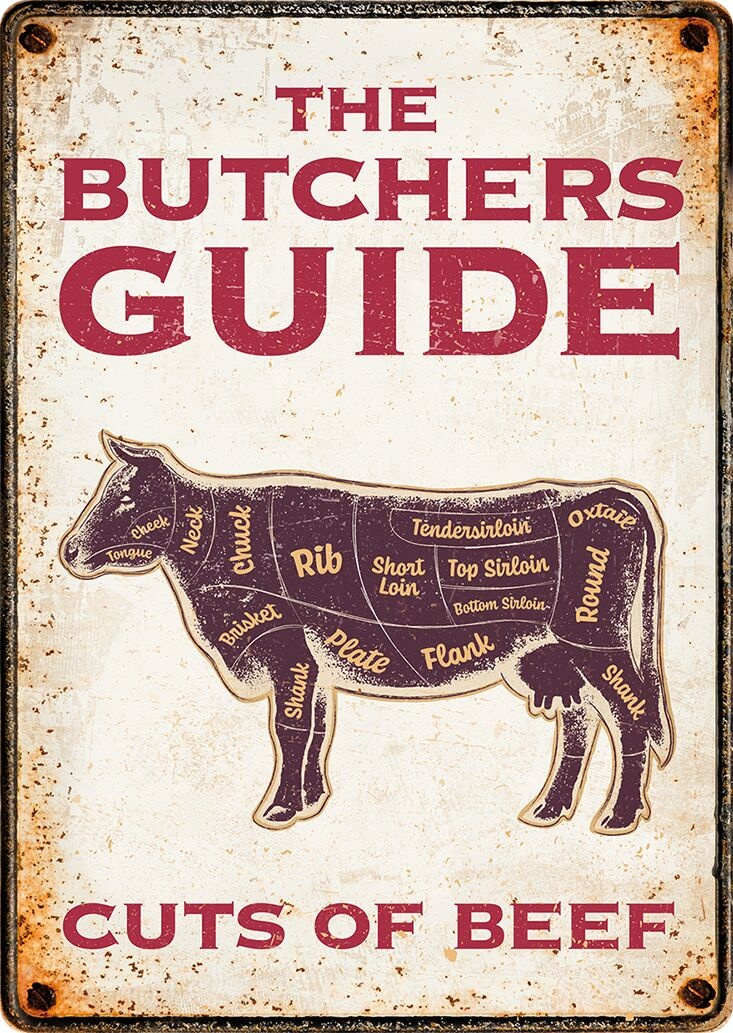 Metallschild The Butchers Guide 14,8x21 cm