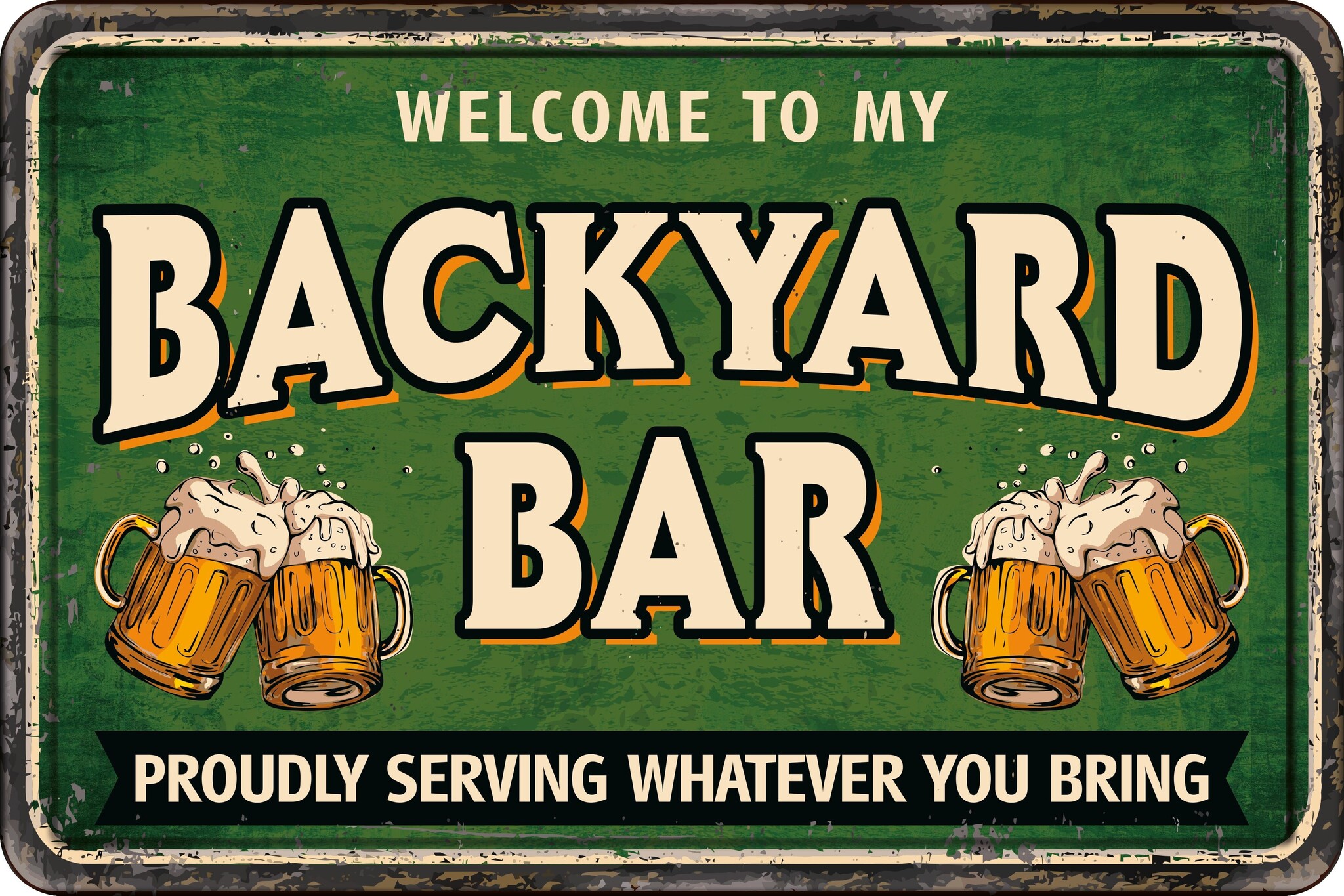 Metallschild Welcome to My Backyard Bar 30x20 cm