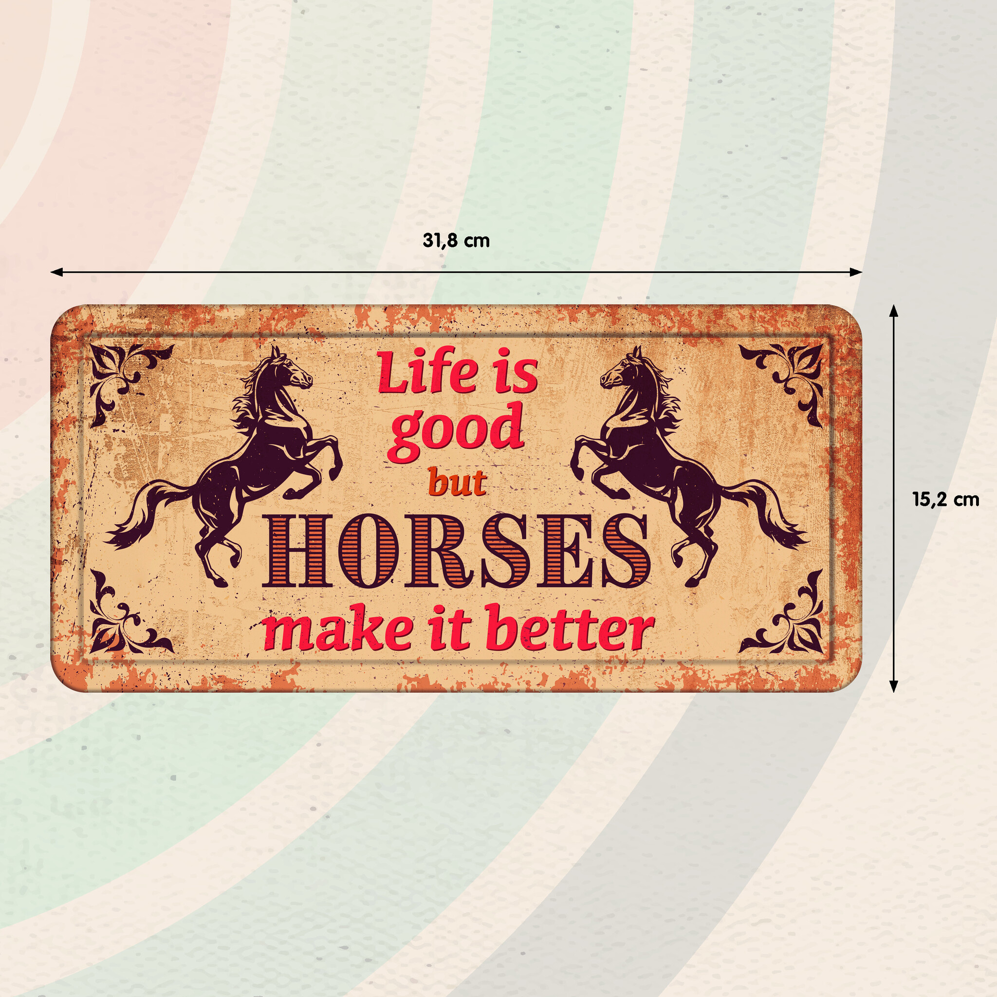 Metalen bord Life Is Good but Horses Make it Better 31,8x15,2 cm