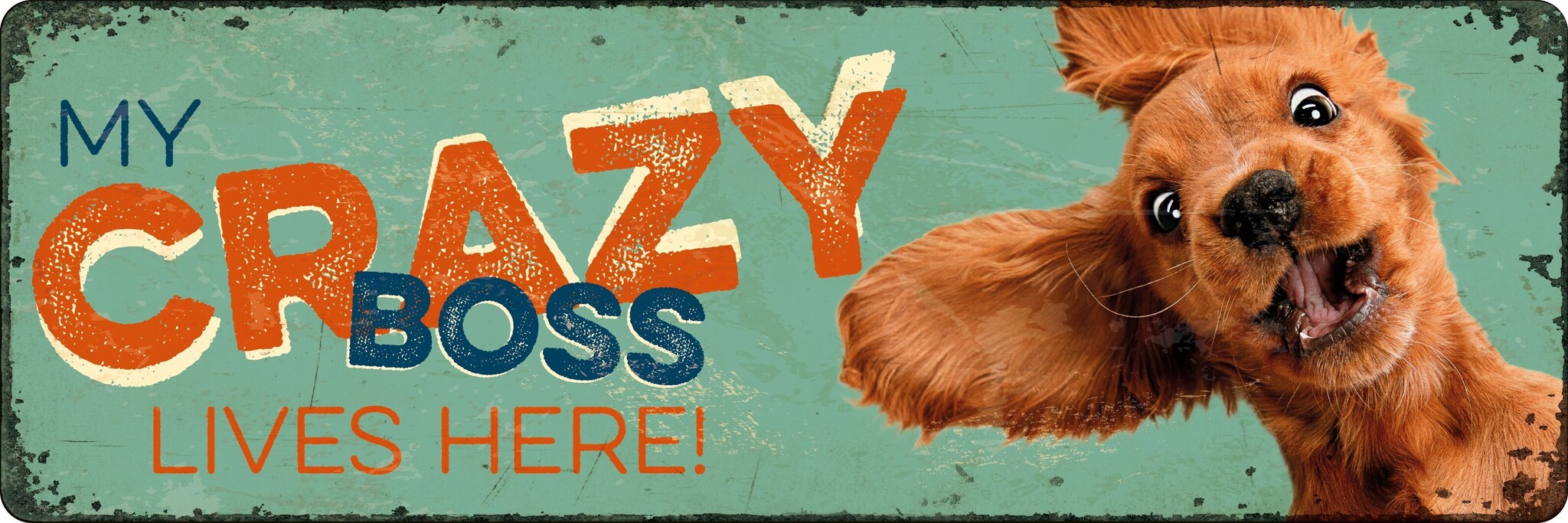 Metalen bord My Crazy Boss Lives Here! 27x9 cm