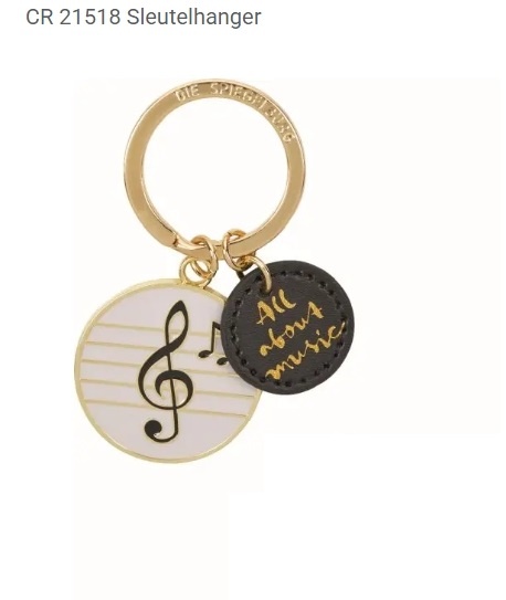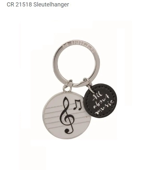 Muzieksleutelhanger ‘All about music’ met muzieksleutel en muzieknoot