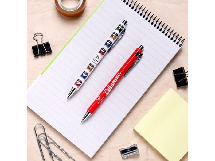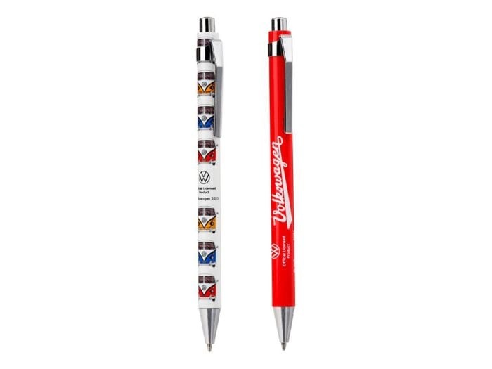 Exclusief ontworpen pennenset bestaande uit één rode en één VW pen met verschillende kleuren T1 busjes en de tekst “Volkswagen” erop. Deze balpennenset in Volkswagen T1-thema is voorzien van minutieuze details. Van de strakke rondingen tot het kenmerkende Volkswagen-logo: elk aspect weerspiegelt de onmiskenbare stijl die de Volkswagen T1 tot een symbool van uitmuntende busjes heeft gemaakt. Elke pen in de set is voorzien van officiële licenties, zodat je zeker weet dat je een authentiek Volkswagen-product in handen hebt.