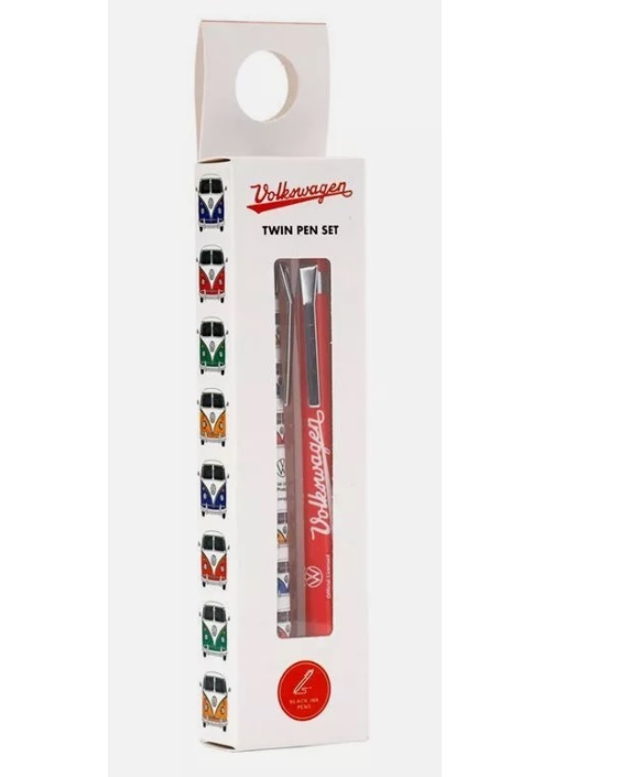 Retro Volkswagen T1 Busje Duo Pennenset met zwarte inkt. Een perfect cadeautje voorzien van officiële licenties in een fraaie giftbox voor iedereen die verzot is op een Volkswagen waarbij eigentijdse en klassieke stijlen zijn gecombineerd. Lees meer